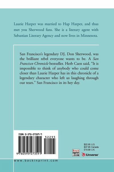 San Francisco's legendary DJ, Don Sherwood, was the brilliant rebel everyone wants to be. A San Francisco Chronicle bestseller. Herb Caen said, "It is impossible to think of anybody who could come closer than Laurie Harper has in this chronicle of a legendary character who left us laughing through our tears." San Francisco in its hey day.
