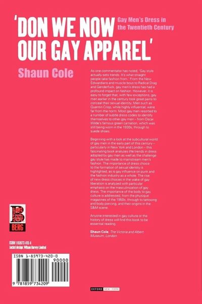 '[A] fascinating study . . . From the New Edwardians and muscle boys to Radical Drag and Genderfuck, Don We Now Our Gay Apparel has it all.'Gay Times'This is a very readable book about gay men's dress in the 20th century, from coded signifiers of sexuality to macho cowboy clones.'The Scotsman''Hegemonic masculinity' is a whole subject in itself, entertainingly and learnedly discussed in Shaun Cole's perfectly titled 'Don We Now Our Gay Apparel', which shows in fascinating detail how 'clothing has been a primary method of identification for and of gay men.' 'London Review of Books'This wonderfully named volume is an important addition to a thin area of research The book is an informative read, for both gay and straight students This is an academic work, but worthy of a wider following.'Amazon Books'Deftly documents nuances associated with gay male dress and their impact on the fashion world, providing the reader with a deeper appreciation of the homosexual aesth