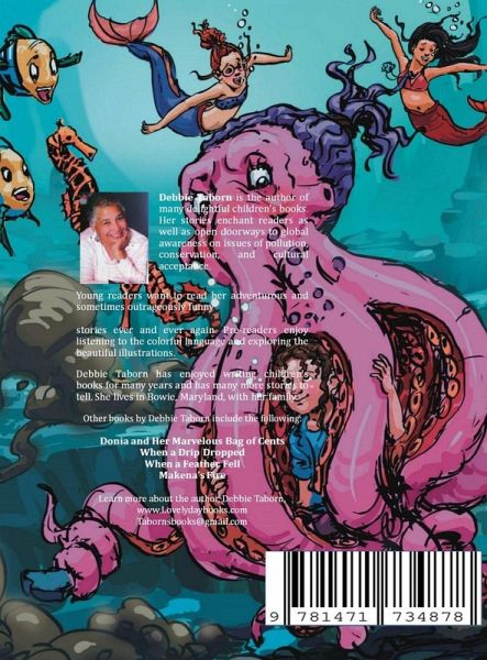 Donia returns with a new adventure from under the sea. She meets mermaids and underwater friends. Her new friends take her for an undersea journey. Donia is shocked and saddened to see what is happening beneath the sea! Debbie Taborn is the author of several children's books. She has been writing children's books for more than a decade. Children are her inspiration for adventurous, comical and engaging stories. ¿ Makena's Fire ¿ When a Drip Dropped ¿ Donia and Her Marvelous Bag of Cents ¿ When a Feather Fell Debbie Taborn was introduced to the love of books and storytelling at a very young age. Her father, born in New England, told many fascinating tales of his childhood. Her mother, an avid reader worked at the Library of Congress in Washington, D.C. where Debbie visited and explored books. She enjoys writing stories that capture the creative minds of children. Her enchanting stories gently bring young readers to consider, Cultural acceptance of all people, Environmental responsibility for our earth, and Women's empowerment. As a retired elementary teacher, Debbie enjoys writing, and traveling to schools to share the joy of reading and writing. She was a teacher and taught reading to youngsters for many years. As a retired elementary school teacher, she has many more stories to tell. There's always more to come. This author loves to listen to stories, tell and read stories, as well as write stories. Children are her greatest resource of adventurous and interesting stories. LovelyDayBooks.com Tabornsbooks@gmail.com