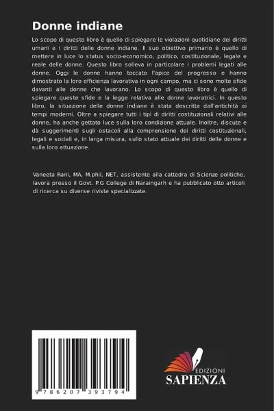 Lo scopo di questo libro è quello di spiegare le violazioni quotidiane dei diritti umani e i diritti delle donne indiane. Il suo obiettivo primario è quello di mettere in luce lo status socio-economico, politico, costituzionale, legale e reale delle donne. Questo libro solleva in particolare i problemi legati alle donne. Oggi le donne hanno toccato l'apice del progresso e hanno dimostrato la loro efficienza lavorativa in ogni campo, ma ci sono molte sfide davanti alle donne che lavorano. Lo scopo di questo libro è quello di spiegare queste sfide e la legge relativa alle donne lavoratrici. In questo libro, la situazione delle donne indiane è stata descritta dall'antichità ai tempi moderni. Oltre a spiegare tutti i tipi di diritti costituzionali relativi alle donne, ha anche gettato luce sulla loro condizione attuale. Inoltre, discute e dà suggerimenti sugli ostacoli alla comprensione dei diritti costituzionali, legali e sociali e, in larga misura, sullo stato attuale dei diritti delle donne e sulla loro attuazione.