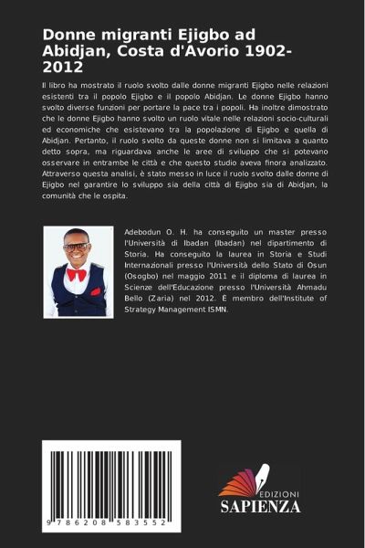 Il libro ha mostrato il ruolo svolto dalle donne migranti Ejigbo nelle relazioni esistenti tra il popolo Ejigbo e il popolo Abidjan. Le donne Ejigbo hanno svolto diverse funzioni per portare la pace tra i popoli. Ha inoltre dimostrato che le donne Ejigbo hanno svolto un ruolo vitale nelle relazioni socio-culturali ed economiche che esistevano tra la popolazione di Ejigbo e quella di Abidjan. Pertanto, il ruolo svolto da queste donne non si limitava a quanto detto sopra, ma riguardava anche le aree di sviluppo che si potevano osservare in entrambe le città e che questo studio aveva finora analizzato. Attraverso questa analisi, è stato messo in luce il ruolo svolto dalle donne di Ejigbo nel garantire lo sviluppo sia della città di Ejigbo sia di Abidjan, la comunità che le ospita.