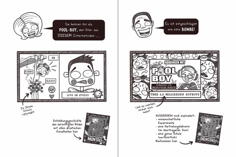 Die witzigen Illustrationen auf jeder Seite eignen sich hervorragend für junge Leser_innen. Mit Worst Week Ever werden auch Jungs ab 10 Jahren zu Viellesern!