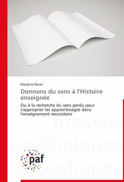 a)L'élève ne comprend pas de manière évidente le sens de ses apprentissages. b)Pour qu'il y trouve un intérêt, il faut que le sens transmis soit pensé en fonction des instructions officielles, des avancées scientifiques, des choix du professeur et des dispositifs didactiques et pédagogiques envisagés. Il est nécessaire de sélectionner les objectifs notionnels, de proposer des activités sensées dans leurs rapports au thème et dans leur forme, et de varier les dispositifs pédagogiques pour surprendre et inciter à l'analyse critique... c) Cet ouvrage s'adresse à tous les curieux du domaine de l'Histoire et de la didactique, à tous les pédagogues, à tous ceux qui gardent un esprit critique sur les Sciences Humaines et Sociales.