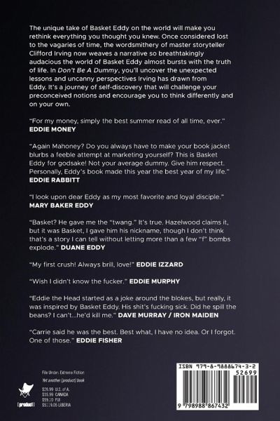 The unique take of Basket Eddy on the world will make you rethink everything you thought you knew. Once considered lost to the vagaries of time, the wordsmithery of master storyteller Clifford Irving now weaves a narrative so breathtakingly audacious the world of Basket Eddy almost bursts with the truth of life. In Don't Be A Dummy, you'll uncover the unexpected lessons and uncanny perspectives Irving has drawn from Eddy. It's a journey of self-discovery that will challenge your preconceived notions and encourage you to think differently and on your own. (Full Disclosure: This is a blank book. And as you may have guessed, Don't Be A Dummy is a work of extreme fiction. Names, characters, businesses, places, events, locales, and incidents are either the products of the author's imagination or used in a fictitious manner. Any resemblance to actual persons, living or dead, or actual events is purely coincidental. I.e., Basket Eddy never met Clifford Irving.)