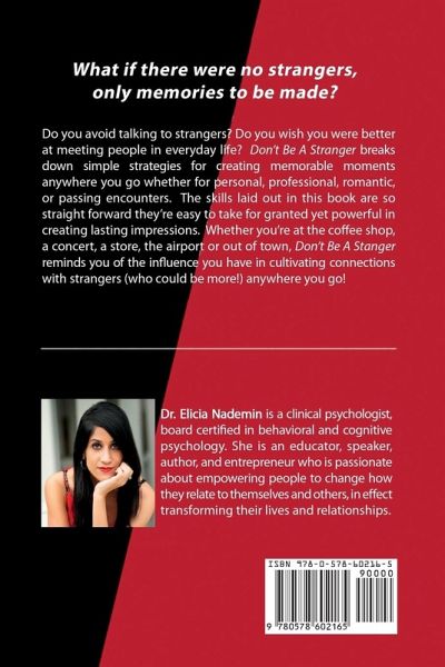 Do you avoid talking to strangers? Do you wish you were better at meeting people in everyday life? Don't Be A Stranger breaks down simple strategies for creating memorable moments anywhere you go whether for personal, professional, romantic, or passing encounters. The skills laid out in this book are so straight forward they're easy to take for granted yet powerful in creating lasting impressions. Whether you're at the coffee shop, a concert, a store, the airport or out of town, Don't Be A Stranger reminds you of the influence you have in cultivating connections with strangers (who could be more!) anywhere you go! This book is a great tool for developing professional confidence, job interview skills, networking skills, flirting, or simply fun! High school students may use it in refining communication and impression-management skills; college students may use it to better prepare for internships, job or graduate school interviews. Graduate students may use it to prepare for meeting new people on rotations or the start of a new job. Sales professionals and people working in the service industry may find strategies for leaving brief encounters with more favorable first impressions! You might use it to make that next work holiday party or networking event more fun! Afterall, more favorable first impressions may result not only in more memorable moments but also in more personal and professional opportunities, enhanced quality of relationships, greater profitability, and a simply more joyful life! Next time you're considering an opportunity to interact with strangers, grab this book and say, "Yes!" as we make talking to strangers easier and more fun!