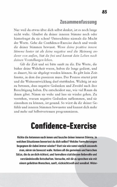 Ms. Confidence hat selbst schon viele Widrigkeiten auf ihrem Weg zu Selbstbestimmung und einem authentischen Leben überwunden. In ihrem Ratgeber findest du leicht umsetzbare Strategien und motivierende Erfolgsgeschichten, um deinen ganz persönlichen Weg zu gehen!