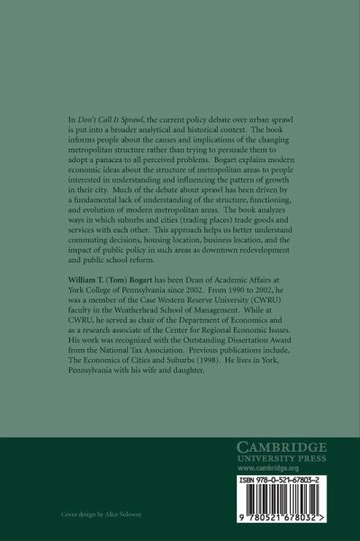 In Don't Call It Sprawl, the current policy debate over urban sprawl is put into a broader analytical and historical context. The book informs people about the causes and implications of the changing metropolitan structure rather than trying to persuade them to adopt a panacea to all perceived problems. Bogart explains modern economic ideas about the structure of metropolitan areas to people interested in understanding and influencing the pattern of growth in their city. Much of the debate about sprawl has been driven by a fundamental lack of understanding of the structure, functioning, and evolution of modern metropolitan areas. The book analyzes ways in which suburbs and cities (trading places) trade goods and services with each other. This approach helps us better understand commuting decisions, housing location, business location, and the impact of public policy in such areas as downtown redevelopment and public school reform.