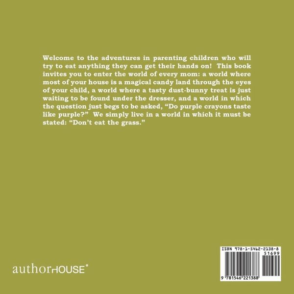 Welcome to the adventures in parenting children who will try to eat anything they can get their hands on! This book invites you to enter the world of every mom: a world where most of your house is a magical candy land through the eyes of your child, a world where a tasty dust-bunny treat is just waiting to be found under the dresser, and a world in which the question just begs to be asked, Do purple crayons taste like purple? We simply live in a world in which it must be stated: Dont eat the grass.
