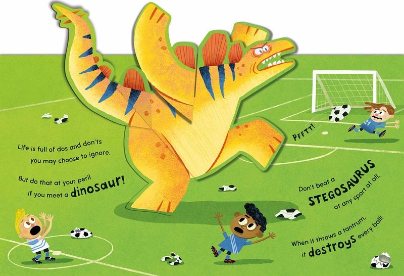 A dino-mite pop-up book introducing what not to do with dinosaurs! Don't ever take a t-rex out for tea, or beat a stegosaurus at sport. You never know what might happen...