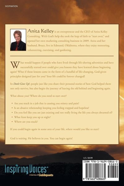What would happen if people who have lived through life-altering adversities and have successfully started over could give you lessons they have learned about beginning again? What if those lessons came in the form of a handful of life-changing, God-given principles designed just for you? Your life could be forever changed! In Don't Give Up!, people just like you share their personal stories of how God helped them not only survive, but also begin the journey of leaving the old behind and beginning again. What about you? Where do you need to start over? Are you stuck in a job that is causing you misery and pain? Is an abusive relationship keeping you feeling trapped and hopeless? Do you feel like you are just existing and not really living the life you always dreamed of? What fears keep you up at night? Where are you stuck? If you could begin again in some area of your life, where would you like to start? God is waiting. He believes in you. You can begin again!
