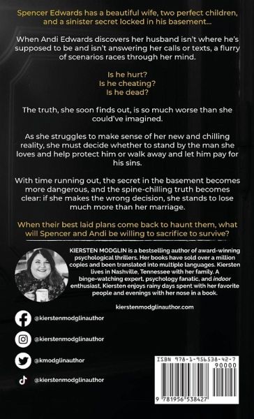 Spencer Edwards has a beautiful wife, two perfect children, and a sinister secret locked in his basement... When Andi Edwards discovers her husband isn't where he's supposed to be and isn't answering her calls or texts, a flurry of scenarios races through her mind. Is he hurt? Is he cheating? Is he dead? The truth, she soon finds out, is so much worse than she could've imagined. As she struggles to make sense of her new and chilling reality, she must decide whether to stand by the man she loves and help protect him or walk away and let him pay for his sins. With time running out, the secret in the basement becomes more dangerous, and the spine-chilling truth becomes clear: if she makes the wrong decision, she stands to lose much more than her marriage. When their best laid plans come back to haunt them, what will Spencer and Andi be willing to sacrifice to survive?