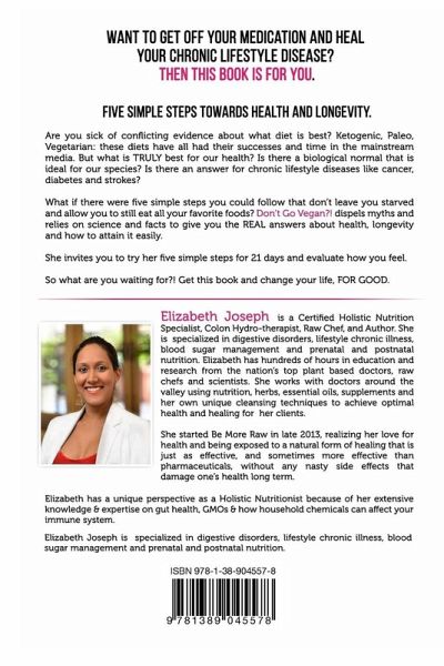 Are you sick of conflicting evidence about what diet is best? Is there really a diet that's best for humans? Is there a way to eat my favorite foods and still lose weight and be healthy for my family? Get All these questions answered and more in this engaging and funny book based on real science and research. Learn about natural cures to common diseases through proven nutrition methods. Certified Holistic Nutrition Specialist invites you to try her simple 5 steps towards health and longevity for 21 days using some of her delicious recipes found in this book.