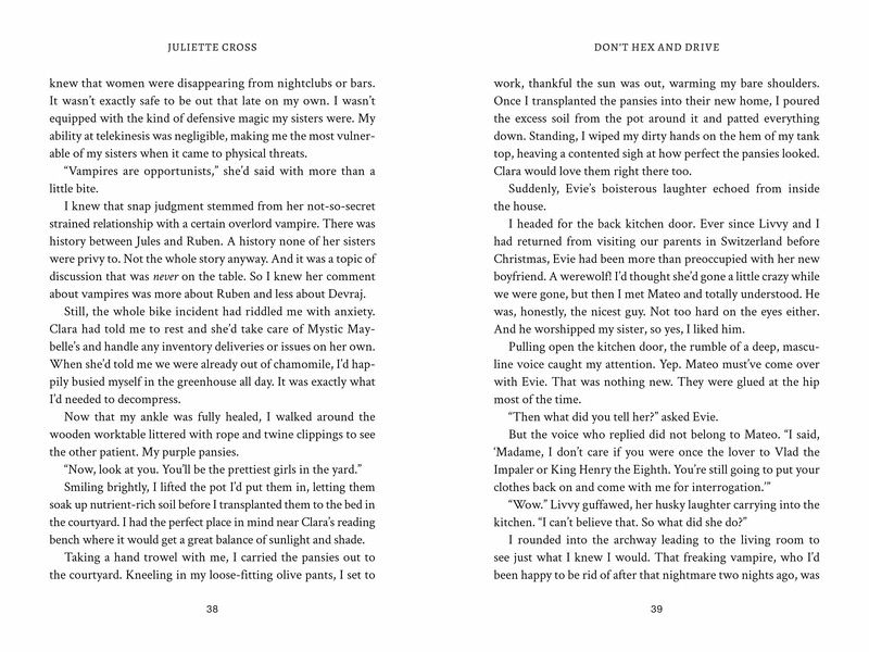 Opposites attract amidst magic and mystery in this addictive paranormal romance between a quiet witch and a magnetic celebrity vampire, the second entry in Juliette Cross’s addictive Stay a Spell series. Isadora Savoie is not a people person. Content to remain in the background of the Savoie sister shenanigans, she spends most of her time in the greenhouse or at the local animal shelter, using her Conduit powers of growth and healing. But when neighborhood girls start disappearing, she’s reluctantly roped into the mystery, partnered with a flashy, flirty vampire to find them before it’s too late. Devraj Kumar has seen and done it all. Three hundred years roaming the earth as a Stygorn—a legendary vampire warrior who operates in the shadows—has its perks. But ennui has set in. That is, until he has a run-in—literally—with an intriguing witch while on a new assignment in New Orleans. Fortunately for him, she’s been recruited by the Lord of Vampires to assist Devraj on the case. Between a Bollywood marathon, supernatural dating app, secret package, and sexy driving instruction, Isadora is in over her head. And Devraj? After just one taste, he’s playing for keeps. The second book in the Stay a Spell series by Juliette Cross, Don’t Hex and Drive is a steamy, opposites attract romance set in a beguiling world of witches, vampire romance, and everlasting love. This irresistible paranormal romance series following the intertwining lives of a New Orleans coven is perfect for fans of Jessica Clare books, The Ex Hex, and other witch romance books.