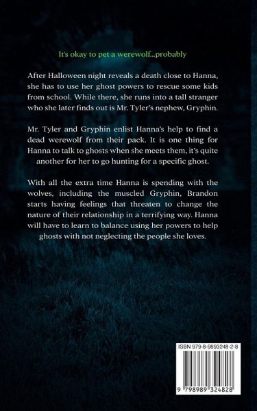 After Halloween night reveals a death close to Hanna, she has to use her ghost powers to rescue some kids from school. While there, she runs into a tall stranger who she later finds out is Mr. Tyler's nephew, Gryphin. Mr. Tyler and Gryphin enlist Hanna's help to find a dead werewolf from their pack. It is one thing for Hanna to talk to ghosts when she meets them, it's quite another for her to go hunting for a specific ghost. With all the extra time Hanna is spending with the wolves, including the muscled Gryphin, Brandon starts having feelings that threaten to change the nature of their relationship in a terrifying way. Hanna will have to learn to balance using her powers to help ghosts with not neglecting the people she loves.