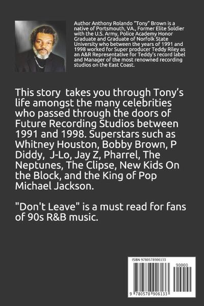 Author Anthony "Tony" Brown is a native of Portsmouth Virginia who between the years 1990 and 1998 worked for super-producer Teddy Riley, founder of NEW JACK SWING as an A&R and Studio Manager at Riley's Future Recording Studios. Tony worked with Riley in his heyday and during this time witnessed the metamorphosis of one of R&B's most impact groups "BLACKSTREET" The story recounts Brown's years managing Future Recording Studio and his interaction with the many iconic celebrities who passed through the doors. Brown shares his interactions with celebrities such as Pattie Labelle, Whitney Houston, Bobby Brown, Jay Z, LL COOL J, Old Dirty Bastard, Pharrell Williams, PuffY, J-LO, New Kids on the Block, and the King of Pop Michael Jackson. The story also recalls the many challenges of running a recording studio owned by one of the biggest producers in the music business, managing studio employees, scheduling sessions, and the turmoil between Teddy and the members of Blackstreet who by the time their third album was released had already been through 5 members. Brown touches on legal issues that caused a rift between him and Riley and some of the violent incidents that happened during his time as studio manager. The most magical moments come through Brown's description of the song creation process as he describes witnessing a song being created from the idea stage to being a certified hit. Brown's story hits on the music industry sex, violence, jealousy, envy, cheating and greed everything you need to make this book a good read.