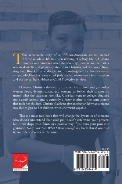 This remarkable story of an African-American woman named Christian whose life has been nothing of a fairy tale. Christian's mother was murdered when she was only thirteen, and her father was an alcoholic and physically abusive to Christian and her two siblings, Angel and Ron. Christian decided to turn to drugs and alcohol as a way to escape, which led her down a dark path that led to numerous incarcerations and the loss all her children to Child Protective Services. However, Christian decided to turn her life around and give other women hope, determination, and courage to follow their dreams no matter what the past may look like. Christian went to college, obtained some certifications, and is currently a foster mother to the same system that took her children. Christian's able to give another child what someone was able to give to her children when she wasn't capable. This is a must-read book that will change the dynamics of someone who doesn't understand that your past doesn't determine your present, but it can shape your future in a positive way if you turn your pain into gratitude. Don't Look Like What I Been Through is a book that if you read it, your life will never be the same. View the author's video trailer HERE!