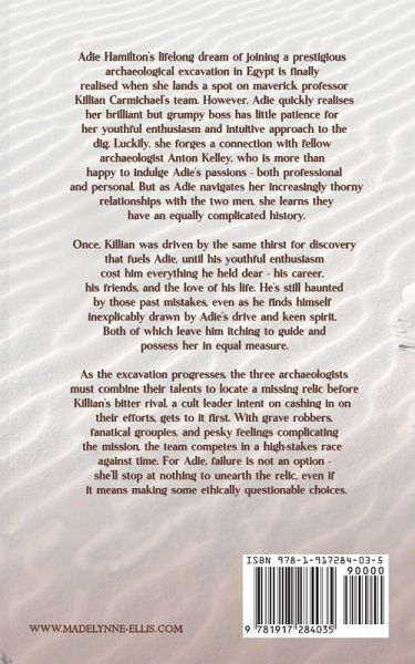 Lust in the dust of the Egyptian desert. Adie Hamilton's lifelong dream of joining a prestigious archaeological excavation in Egypt is finally realised when she lands a spot on maverick professor Killian Carmichael's team. However, Adie quickly realises her brilliant but grumpy boss has little patience for her youthful enthusiasm and intuitive approach to the dig. Luckily, she forges a connection with fellow archaeologist Anton Kelley, who is more than happy to indulge Adie's passions - both professional and personal. But as Adie navigates her increasingly thorny relationships with the two men, she learns they have an equally complicated history. Once, Killian was driven by the same thirst for discovery that fuels Adie, until his youthful enthusiasm cost him everything he held dear - his career, his friends, and the love of his life. He's still haunted by those past mistakes, even as he finds himself inexplicably drawn by Adie's drive and keen spirit. Both of which leave him itching to guide and possess her in equal measure. As the excavation progresses, the three archaeologists must combine their talents to locate a missing relic before Killian's bitter rival, a cult leader intent on cashing in on their efforts, gets to it first. With grave robbers, fanatical groupies, and pesky feelings complicating the mission, the trio compete in a high-stakes race against time. For Adie, failure is not an option - she'll stop at nothing to unearth the relic, even if it means making some ethically questionable choices. Don't Mess with my Relic is a spicy standalone romance featuring a grumpy professor, his keen recruit, and a mysterious adventurer with questionable ethics. It contains sword-crossing shenanigans, sweltering heat, and a lot of playing in the dirt. If you ever wanted to be/do Indy, then this is the spicy archaeological adventure romance for you. Note: An earlier version of this work was published as Passion of Isis. This is a complete reimagining of that work, and contains almost entirely new content.
