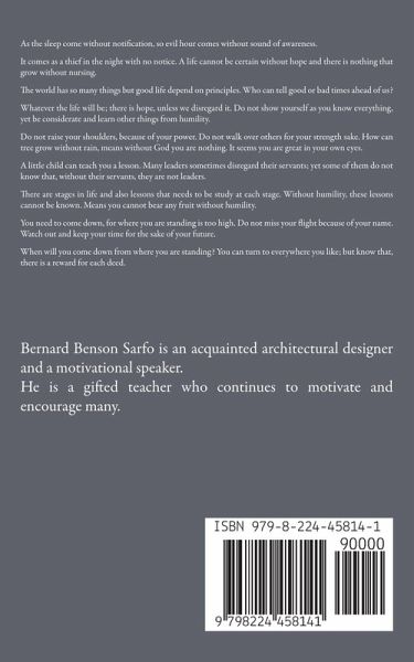 As the sleep come without notification, so evil hour comes without sound of awareness. It comes as a thief in the night with no notice. A life cannot be certain without hope and there is nothing that grow without nursing. The world has so many things but good life depend on principles. Who can tell good or bad times ahead of us? Whatever the life will be; there is hope, unless we disregard it. Do not show yourself as you know everything, yet be considerate and learn other things from humility. Do not raise your shoulders, because of your power. Do not walk over others for your strength sake. How can tree grow without rain, means without God you are nothing. It seems you are great in your own eyes. A little child can teach you a lesson. Many leaders sometimes disregard their servants; yet some of them do not know that, without their servants, they are not leaders. There are stages in life and also lessons that needs to be study at each stage. Without humility, these lessons cannot be known. Means you cannot bear any fruit without humility. You need to come down, for where you are standing is too high. Do not miss your flight because of your name. Watch out and keep your time for the sake of your future. When will you come down from where you are standing? You can turn to everywhere you like; but know that, there is a reward for each deed.