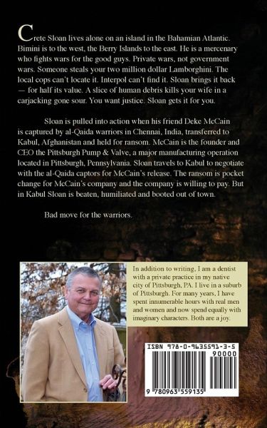 "Al-Qaida," he said. "Is good for you to know who killed you." "American," I said. "Good for you to know who's going to take your head off." "Tuco," I whispered into the headset, and in that moment, the man's head came apart in a mist of blood, bone, and brain matter, as a watermelon smashed to the ground. Crete Sloan lives alone on an island in the Bahamian Atlantic. Bimini is to the west, the Berry Islands to the east. He is a mercenary who fights wars for the good guys. Private wars, not government wars. Someone steals your million-dollar Ferrari LaFerrari. The local cops can't locate it. Interpol can't find it. Sloan brings it back-for half its value. A slice of human debris kills your wife in a carjacking gone sour. You want justice. Sloan gets it for you. Sloan is pulled into action when his friend Deke McCain is captured by al-Qaida warriors and held for ransom in Kabul, Afghanistan. McCain is the founder and CEO of the Pittsburgh Pump & Valve, a major manufacturing operation located in Pittsburgh, PA. Sloan travels to Kabul to negotiate with the al-Qaida captors for McCain's release. The ransom is pocket change for McCain's company, and the company is willing to pay. But in Kabul, Sloan is beaten, humiliated, and run out of town. Bad move by the al-Qaida warriors. Forced back to Pittsburgh empty-handed, Sloan recruits a team of mercenaries, the boys from the old neighborhood, to go up against all of al-Qaida in an effort to free McCain. When the al-Qaida warriors gain an upper hand, Sloan risks his own life to save his friend's. Or die trying.