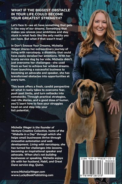 What if your greatest challenges could become your greatest strengths? Well, guess what? They can! You have big dreams... Yet obstacles, fears, and even your own body might be holding you back. It's overwhelming, and it's far less scary to hit the snooze button, roll back over, and carry on living life as you know it... But your fear is what's really holding you back... and you can overcome it! Living with narcolepsy and cataplexy, Michelle Weger knows this struggle all too well-but she turned her toughest experiences into fuel to power her success. Don't Snooze Your Dreams is not only a memoir but also a powerful self-help guide for anyone facing obstacles in life. With humor, heart, and hard-earned wisdom, Weger takes you on her extraordinary journey-from managing a rare debilitating sleep disorder to launching a successful business and becoming an advocate for narcolepsy awareness. But this book isn't just for people with narcolepsy or with a disability. Michelle's insights go far beyond her personal experience. Her lovable Great Dane serves as her medical alert service dog and constant companion, reminding readers that help comes in many forms. Michelle's story is filled with funny and heartwarming moments that will keep you turning the pages, but it's also packed with practical strategies for overcoming your own fears, no matter what challenges you face. Inside this inspirational guide, you'll discover: - Michelle's remarkable journey living with narcolepsy and cataplexy-and how you can find strength in your own struggles, whatever they may be - How to embrace your vulnerabilities and turn them into strengths - The role of humor in facing life's challenges (including a few laughs about life with a giant canine!) - How to identify each part of what's keeping you from achieving your dreams... and how you'll know when it's right to confront your fears and when it's better to work around them - The reason a role model is more powerful than you might realize... and how to find yours - Why your fears are holding you back-and how a Paper Dinosaur can change your perspective - The DREAM Method: 5 simple steps to unlocking your potential and turning your biggest dreams into reality - How to build momentum and take small, powerful steps toward success-even on your hardest days - Why role models and allies are crucial to your success-and how to find and lean on them And much more. Don't Snooze Your Dreams is an unforgettable blend of memoir and self-help, offering readers the inspiration and motivation they need to take control of their lives. Whether you're looking to achieve big dreams or simply overcome the daily challenges life throws at you, this book will show you how to move forward, one step at a time.