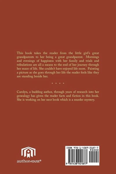 This book takes the reader from the little girl's great grandparents to her being a great grandparent. Mornings and evenings of happiness with her family and trials and tribulations are all a means to the end of her journey through her maze of life. She couldn't have enjoyed life more. Painting a picture as she goes through her life the reader feels like they are standing beside her.