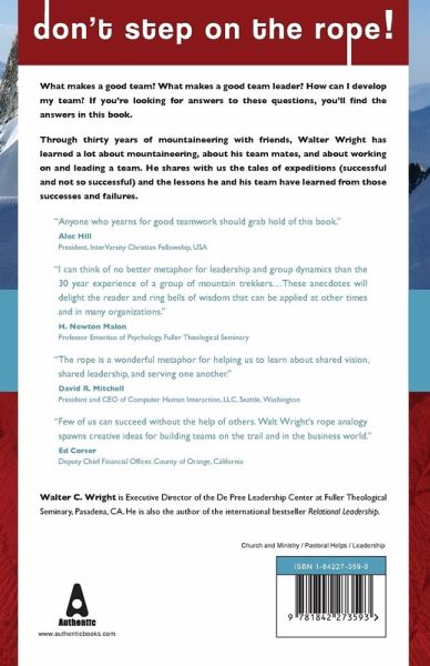 What makes a good team? What makes a good team leader? How can I develop my team? If you're looking for answers to these questions, you'll find the answers in this book. Through thirty years of climbing expeditions with friends, Walter Wright has learned a lot about mountaineering, about his teammates and about working on and leading a team. He shares with us the tales of expeditions (successful and not so successful) and the lessons he and his team have learned from those experiences.