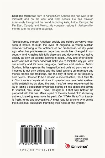 Take a journey through American society and culture as you've never seen it before, through the eyes of Angelina, a young Martian observer following in the footsteps of her predecessor of fifty years ago. After her predecessor's departure, much has changed in our country. And Angelina faithfully observes and documents our quirky society as only an outsider looking in could. Lively and entertaining,