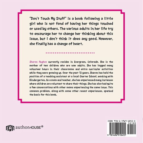 "Don't Touch My Stuff" is a book following a little girl who is not fond of having her things touched or used by others. The various adults in her life try to encourage her to change her thinking about this issue, but I don't think it does any good. However, she finally has a change of heart.