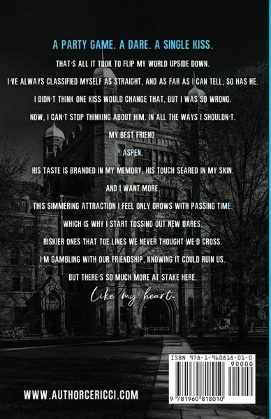 It was never meant to be more than a dare. A party game. A dare. A single kiss. That's all it took to flip my world upside down. I've always classified myself as straight, and as far as I can tell, so has he. I didn't think one kiss would change that, but I was so wrong. Now, I can't stop thinking about him. In all the ways I shouldn't. My best friend. Aspen. His taste is branded in my memory, his touch seared in my skin. And I want more. This simmering attraction I feel only grows with passing time. Which is why I start tossing out new dares. Riskier ones that toe lines we never thought we'd cross. I'm gambling with our friendship, knowing it could ruin us. But there's so much more at stake here. Like my heart. *Don't You Dare is a new adult college romance featuring two best friends, too many baseball puns, scorching dirty talk, and a whole lot of bi-curious exploration. Not suitable for anyone under 18 years of age.*