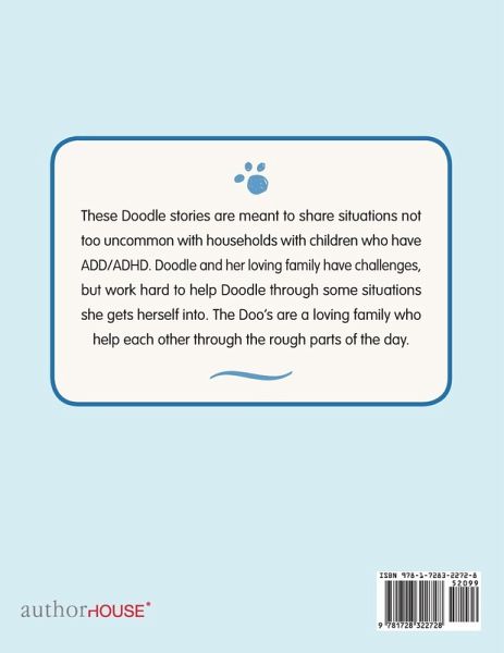 These Doodle stories are meant to share situations not too uncommon with households with children who have ADD/ADHD. Doodle and her loving family have challenges, but work hard to help Doodle through some situations she gets herself into. The Doo's are a loving family who help each other through the rough parts of the day.