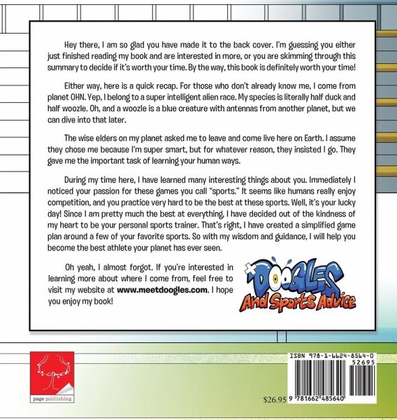 Hey there, I am so glad you're interested in my book! I guess you're reading this to see if it's worth purchasing. Well, I'll be the first to say, this book is definitely worth it! Either way, here is a quick summary for you. For those who don't already know me, I come from planet OHN. Yep, I belong to a super intelligent alien race. My species is literally half duck and half woozle. Oh, and a woozle is a blue creature with antennas from another planet, but we can dive into that later. The wise elders on my planet asked me to leave and come live here on Earth. I assume they chose me because of my superior intellect, but for whatever reason, they insisted I go. They gave me the important task of learning all about your human ways. During my time here, I have learned many interesting things about you. Immediately I noticed your passion for these games you call "sports." It seems like humans really enjoy competition, and you practice very hard to be the best at these sports. Well, it's your lucky day! Since I am pretty much the best at everything, I have decided out of the kindness of my heart to be your personal sports trainer. That's right, I have created a simplified game plan around a few of your favorite sports. So, with my exceptional wisdom and guidance, I will help you become the best athlete your planet has ever seen. Oh yeah, I almost forgot. If you're interested in learning more about where I come from, feel free to visit my website at www.meetdoogles.com.