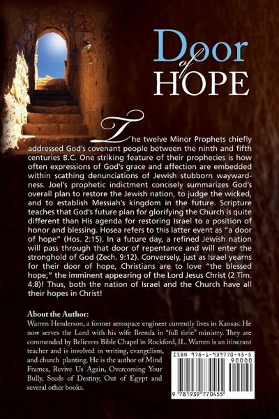 The twelve Minor Prophets chiefly addressed God's covenant people between the ninth and fifth centuries B.C. One striking feature of their prophecies is how often expressions of God's grace and affection are embedded within scathing denunciations of Jewish stubborn waywardness. Joel's prophetic indictment concisely summarizes God's overall plan to restore the Jewish nation, to judge the wicked, and to establish Messiah's kingdom in the future. Scripture teaches that God's future plan for glorifying the Church is quite different than His agenda for restoring Israel to a position of honor and blessing. Hosea refers to this latter event as "a door of hope" (Hos. 2:15). In a future day, a refined Jewish nation will pass through that door of repentance and will enter the stronghold of God (Zech. 9:12). Conversely, just as Israel yearns for their door of hope, Christians are to love "the blessed hope," the imminent appearing of the Lord Jesus Christ (2 Tim. 4:8)! Thus, both the nation of Israel and the Church have all their hopes in Christ!