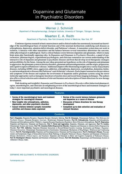 Path-breaking and insightful, Dopamine and Glutamate in Psychiatric Disorders offers behavioral pharmacologists, neurobiologists, and clinicians an enlightening review of the neurobiological basis and treatment strategies of today's most important psychiatric and neurological diseases.