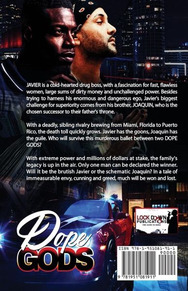JAVIER is a cold-hearted drug boss, with a fascination for fast, flawless women, large sums of dirty money and unchallenged power. Besides trying to harness his enormous and dangerous ego, Javier's biggest challenge for superiority comes from his brother, JOAQUIN, who is the chosen successor to their father's throne. With a deadly, sibling rivalry brewing from Miami, Florida to Puerto Rico, the death toll quickly grows. Javier has the goons, Joaquin has the guile. Who will survive this murderous ballet between two DOPE GODS? With extreme power and millions of dollars at stake, the family's legacy is up in the air. Only one man can be declared the winner. Will it be the brutish Javier or the schematic Joaquin? In a tale of immeasurable envy, cunning and greed, much will be won and lost.