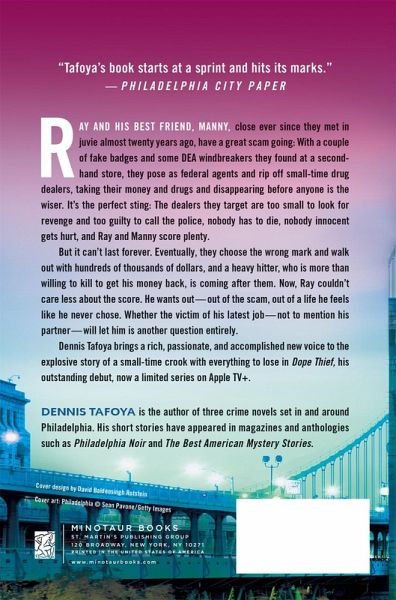 This "raw and redemptive"* debut novel is the basis of a buzzy new TV show Dope Thief coming to Apple+ TV in March 2025 starring Brian Tyree Henry. Ray and his best friend, Manny, close ever since they met in juvie almost twenty years ago, have a great scam going: With a couple of fake badges and some DEA windbreakers they found at a secondhand store, they pose as federal agents and rip off small-time drug dealers, taking their money and drugs and disappearing before anyone is the wiser. It's the perfect sting: the dealers they target are too small to look for revenge and too guilty to call the police, nobody has to die, nobody innocent gets hurt, and Ray and Manny score plenty. But it can't last forever. Eventually, they choose the wrong mark and walk out with hundreds of thousands of dollars, and a heavy hitter, who is more than willing to kill to get his money back, is coming after them. Now Ray couldn't care less about the score. He wants out---out of the scam, out of a life he feels like he never chose. Whether the victim of his latest job---not to mention his partner---will let him is another question entirely. Dennis Tafoya brings a rich, passionate, and accomplished new voice to the explosive story of a small-time crook with everything to lose in Dope Thief , his outstanding debut.