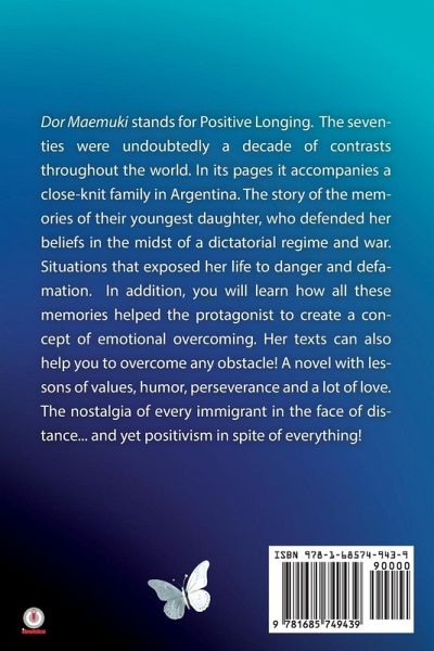 Dor Maemuki stands for Positive Longing. The seventies were undoubtedly a decade of contrasts throughout the world. In its pages it accompanies a close-knit family in Argentina. The story of the memories of their youngest daughter, who defended her beliefs in the midst of a dictatorial regime and war. Situations that exposed her life to danger and defamation. In addition, you will learn how all these memories helped the protagonist to create a concept of emotional overcoming. Her texts can also help you to overcome any obstacle! A novel with lessons of values, humor, perseverance and a lot of love. The nostalgia of every immigrant in the face of distance... and yet positivism in spite of everything!