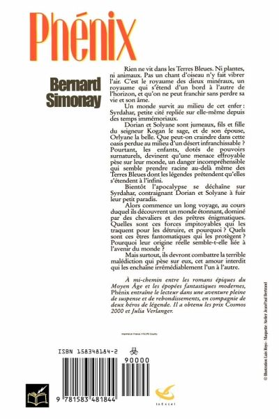 Rien ne vit dans les Terres Bleues. Ni plantes, ni animaux. Pas un chant d'oiseau n'y fait vibrer l'air. C'est le royaume des dieux mineraux, un royaume qui s'etend d'un bord a l'autre de l'horizon, et qu'on ne peut franchir sans perdre sa vie et son ame. Un monde survit au milieu de cet enfer: Ssyrdahar, petite cite repliee sur elle-meme dupuis des temps immemoriaux. Dorian et Solyane sont jumeaux, jils et fille du seigneur Kogan le sage, et de son epouse, Orlyane la belle. Que peut-on craindre dans cette oasis perdue au milieu d'un desert infranchissable? Pourtant, les enfants, dotes de pouvoirs surnaturels, devinent qu'une menace effroyable pese sur leur monde, un danger incomprehensible qui semble prendre racine au-dela meme des Terres Bleues dont les legendes pretendent qu'elles s'etendent a l'infini. Bientot l'apocalypse se dechaine sur Syrdahar, contraignant Dorian et Solyane a fuir leur petit paradis. Alors commence un long voyage, au cours duquel ils decouvrent un monde etonnant, domine par des chevaliers et des pretres enigmatiques. Quelles sont ces forces impitoyables qui les traquent pour les detruire, et pourquoi? Quels sont ces etres fantomatiques qui les protegent? Pourquoi leur origine reelle semble-t-elle liee a l'avenir du monde? Mair surtout, ils devront combattre la terrible malediction qui pese sur eux, cet amour interdit qui les enchaine irremediablement l'un a l'autre.