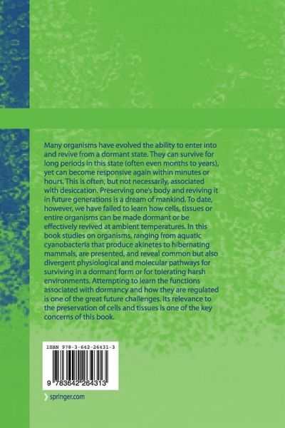 Many organisms have evolved the ability to enter into and revive from a dormant state. They can survive for long periods in this state (often even months to years), yet can become responsive again within minutes or hours. This is often, but not necessarily, associated with desiccation. Preserving one's body and reviving it in future generations is a dream of mankind. To date, however, we have failed to learn how cells, tissues or entire organisms can be made dormant or be effectively revived at ambient temperatures. In this book studies on organisms, ranging from aquatic cyanobacteria that produce akinetes to hibernating mammals, are presented, and reveal common but also divergent physiological and molecular pathways for surviving in a dormant form or for tolerating harsh environments. Attempting to learn the functions associated with dormancy and how they are regulated is one of the great future challenges. Its relevance to the preservation of cells and tissues is one of the keyconcerns of this book.