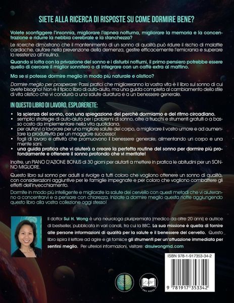 Siete alla ricerca di risposte su come dormire bene? Volete sconfiggere l'insonnia, migliorare l'apnea notturna, migliorare la memoria e la concentrazione e ridurre la nebbia cerebrale e la stanchezza? Le ricerche dimostrano che il mantenimento di un sonno di qualità può ridurre il rischio di malattie cardiache, aiutare nella prevenzione della demenza, gestire efficacemente l'emicrania e superare la resistenza all'insulina. Quando si lotta con la privazione del sonno e i disturbi notturni, il primo pensiero potrebbe essere quello di cercare il miglior sonnifero o di integrare con un caffè extra al mattino. Ma se si potesse dormire meglio in modo più naturale e olistico? Dormire meglio per prosperare: Passi pratici che miglioreranno la vostra vita è il libro sul sonno di cui avete bisogno! Non è il tipico libro di auto-aiuto, ma una guida completa al cambiamento dello stile di vita olistico che vi condurrà a una salute duratura e a un benessere generale. In questo libro di lavoro, esplorerete:la scienza del sonno, con una spiegazione del perché dormiamo e del ritmo circadiano. semplici strategie di auto-aiuto per i problemi di sonno, oltre a trucchi e strumenti gratuiti o a basso costo da implementare nella vita quotidiana. per aiutarvi a lavorare per una migliore salute del corpo, a migliorare il vostro umore e ad aumentare la produttività per un maggiore successo! fogli di lavoro e attività che promuovono il benessere generale, alimentando un corpo e una mente sani. una guida pratica che vi aiuterà a creare la perfetta routine del sonno per dormire più profondamente e ottenere il sonno profondo che vi meritate! Inoltre, un PIANO D'AZIONE BONUS di 30 giorni per aiutarti a mettere in pratica le abitudini per un SONNO MIGLIORE. Dormite in modo più intelligente e migliorate la salute del cervello con questi metodi che vi aiuteranno a concentrarvi e a pensare con chiarezza. Iniziate a dormire meglio questa notte aggiungendo questo libro alla vostra collezione oggi stesso!