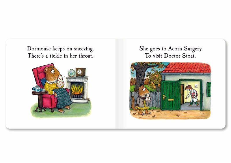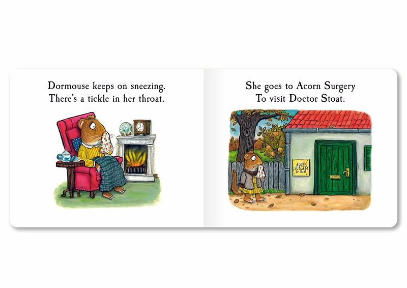 Lift the flaps and join in the fun with this bestselling rhyming preschool favourite, Dormouse Has a Cold by Julia Donaldson and Axel Scheffler, creators of The Gruffalo. Dormouse is sniffing and snuffling - being ill is hard! But with some help from Doctor Stoat and a visit from her friends, she soon starts to feel better. What will cheer her up? Lift the flaps to find out, then join Dormouse and her friends for a fun trip to Acorn Fair. With sturdy flaps on every spread and rhyming stories that are a joy to read aloud, the Tales from Acorn Wood series has sold over 10 million copies worldwide and has been delighting both parents and toddlers for over twenty-five years. Look out for the other ten Tales from Acorn Wood stories: Hare's New Dress, Postman Bear, Squirrel's Snowman, Badger's Band and more!