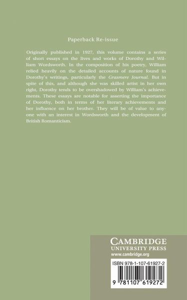 Originally published in 1927, this volume contains a series of short essays on the lives and works of Dorothy and William Wordsworth. In the composition of his poetry, William relied heavily on the detailed accounts of nature found in Dorothy's writings, particularly the Grasmere Journal. But in spite of this, and although she was a skilled artist in her own right, Dorothy tends to be overshadowed by William's achievements. These essays are notable for asserting the importance of Dorothy, both in terms of her literary achievements and her influence on her brother. They will be of value to anyone with an interest in the Wordsworths and the development of British Romanticism.
