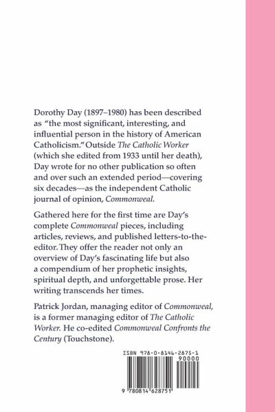 Dorothy Day has been described as "the most significant, interesting, and influential person in the history of American Catholicism." Outside The Catholic Worker (which she edited from 1933 to her death), Day wrote for no other publication so often and over such an extended period?covering six decades?as the independent Catholic journal of opinion, Commonweal. Gathered here for the first time are Day's complete Commonweal pieces, including articles, reviews, and published letters-to-the-editor. They range from the personal to the polemical; from youthful enthusiasm to the gratitude of an aged warrior; sketches from works in progress; portraits of prisoners and dissidents; and a gifted reporter?s dispatches from the flash points of mid-twentieth-century social and economic conflict. Day?s writing offers readers not only an overview of her fascinating life but a compendium of her prophetic insights, spiritual depth, and unforgettable prose.