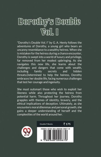 ""Dorothy's Double Vol. I"" by G. A. Henty follows the adventures of Dorothy, a young girl who bears an uncanny resemblance to a wealthy heiress. When she is mistaken for the heiress during a chance encounter, Dorothy is swept into a world of luxury and privilege, far removed from her modest upbringing. As she navigates this new life, she learns about the challenges and dangers that come with wealth, including family secrets and hidden threats. Determined to help the heiress, Dorothy embraces her double life, facing numerous challenges that test her courage and ingenuity. She must outsmart…mehr
