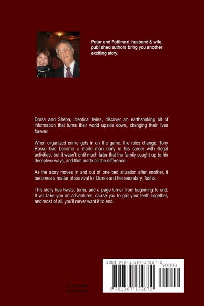 Dorsa and Sheba, identical twins, discover an earthshaking bit of information that turns their world upside down, changing their lives forever. When organized crime gets in on the game, the rules change. Tony Rosso had become a made man early in his career with illegal activities, but it wasn't until much later that the family caught up to his deceptive ways, and that made all the difference. As the story moves in and out of one bad situation after another, it becomes a matter of survival for Dorsa and her secretary, Tasha. This story has twists, turns, and is a page turner.