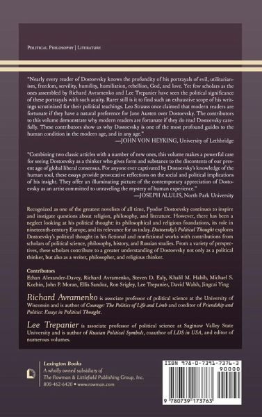 Recognized as one of the greatest novelists of all-time, Fyodor Dostoevsky continues to inspire and instigate questions about religion, philosophy, and literature. However, there has been a neglect looking at his political thought: its philosophical and religious foundations, its role in nineteenth-century Europe, and its relevance for us today. Dostoevsky's Political Thought explores Dostoevsky's political thought in his fictional and nonfictional works with contributions from scholars of political science, philosophy, history, and Russian Studies. From a variety of perspectives, these scholars contribute to a greater understanding of Dostoevsky not only as a political thinker but also as a writer, philosopher, and religious thinker.