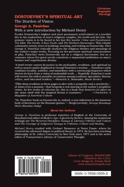 Fyodor Dostoevsky's highest and most permanent achievement as a novelist lies in his exploration of man's religious complex, his world and his fate. His primary vision is to be found in his last five novels: Crime and Punishment, The Idiot, The Devils, A Raw Youth, and The Brothers Karamazov. This volume culminates twenty years of studying, teaching, and writing on Dostoevsky. Here George A. Panichas critically analyzes the religious themes and meanings of the author's major works. Focusing on the pervasive spiritual consciousness at play, Panichas views Dostoevsky not as a religious doctrinaire, but as a visionary whose five great novels constitute a sequential meditation on man's human and superhuman destiny.