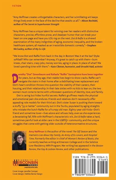 Dorothy “Dot” Greenbaum and Rafaela “Ralfie” Santopietro have been together for years, but as they age, their stable lives begin to show cracks. Ralfie can’t navigate the stairs in their home after a debilitating knee replacement and Dot’s heart condition throws into question the viability of their careers, their housing, and their relationship. In their late sixties with no kids to lean on, the two women must come to terms with unforeseen questions of identity, love, and family. Dot is caring but hides hurtful secrets. Ralfie’s gruffness masks the physical and emotional pain she endures. Friends and relatives don’t necessarily offer appealing role models for their third act. Dot’s sister Susan is pushing them toward a stuffy “55 or better” community out in the ’burbs, populated by aging straights who mistake the butch Ralfie for a frumpy old man. Eighty-year-old Viola—Dot’s friend and sometime lover—lives alone and refuses help, even as she experiences a devastating fall. Rife with Hoffman’s characteristic wit, Dot & Ralfie takes a hard, sometimes painful look at elder care in the LGBTQ+ community, and the unique struggles that come with getting older outside of heteronormative structures.