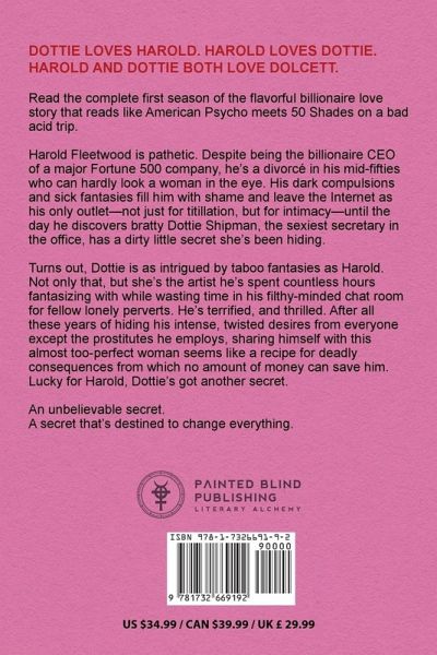 DOTTIE LOVES HAROLD. HAROLD LOVES DOTTIE. HAROLD AND DOTTIE BOTH LOVE DOLCETT. Indulge in a flavorful billionaire love story like you've never read before: American Psycho meets 50 Shades on a bad acid trip. Harold Fleetwood is pathetic. Despite being the billionaire CEO of a major Fortune 500 company, he's a divorcé in his mid-fifties who can hardly look a woman in the eye. His dark compulsions and sick fantasies fill him with shame and leave the Internet as his only outlet, not just for titillation, but for intimacy--until the day he discovers bratty Dottie Shipman, the sexiest secretary in the office, has a dirty little secret she's been hiding. Turns out, Dottie is as intrigued by taboo fantasies as Harold is. Not only that, but she's the artist he's spent countless hours fantasizing with while wasting time in his filthy-minded chat room for fellow lonely perverts. He's terrified, and thrilled. After all these years of hiding his intense, twisted desires from everyone except the prostitutes he employs, sharing himself with this almost too-perfect woman seems like a recipe for deadly consequences from which no amount of money can save him. Luckily for Harold, Dottie's got another secret. An unbelievable secret. A secret that's destined to change everything.