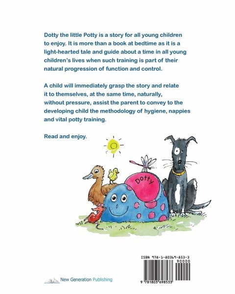 Dotty the little Potty is a story for all young children to enjoy. It is more than a book at bedtime as it is a light-hearted tale and guide about a time in all young children's lives when such training is part of their natural progression of function and control.A child will immediately grasp the story and relate it to themselves, at the same time, naturally, without pressure, assist the parent to convey to the developing child the methodology of hygiene, nappies and vital potty training.Read and enjoy