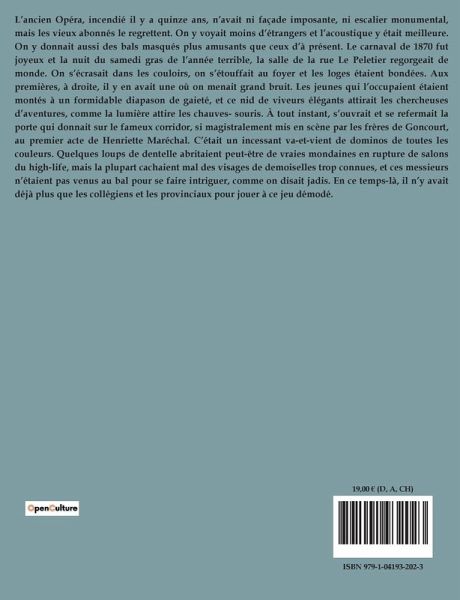 Un mystère plane sur les pages de ' DOUBLE-BLANC ', un roman où l'intrigue se tisse avec une habileté remarquable. L'histoire se déroule dans le Paris du XIXe siècle, une époque où les contrastes sociaux et les évolutions personnelles s'entremêlent. Au cur de cette fresque urbaine, un crime énigmatique défie les esprits les plus aiguisés. Les rues pavées de la capitale française deviennent le théâtre d'une enquête haletante, où chaque indice est une pièce d'un puzzle complexe. Fortuné du Boisgobey, maître du suspense, nous entraîne dans une exploration minutieuse des rouages de la justice et des failles humaines. Les personnages, finement ciselés, évoluent dans un décor où la lumière et l'ombre se disputent la vedette. Les thèmes de la justice, de la morale et de la vérité s'entrelacent, offrant au lecteur une réflexion sur la nature humaine et ses contradictions. L'auteur nous plonge dans une atmosphère où le suspense est omniprésent, et où chaque page tournée révèle de nouvelles surprises. En suivant les pas des enquêteurs, le lecteur est invité à démêler les fils d'une intrigue savamment construite. Ce roman policier classique, par son écriture précise et son intrigue captivante, nous offre une immersion totale dans un univers où le moindre détail peut faire basculer le cours des événements. À travers cette uvre, Fortuné du Boisgobey nous offre une perspective innovante sur le genre policier, enrichissant notre compréhension des mécanismes de l'enquête et des motivations humaines. En développant une intrigue où chaque élément a sa place, ce livre nous apprend à apprécier la complexité des relations humaines et la quête incessante de vérité.